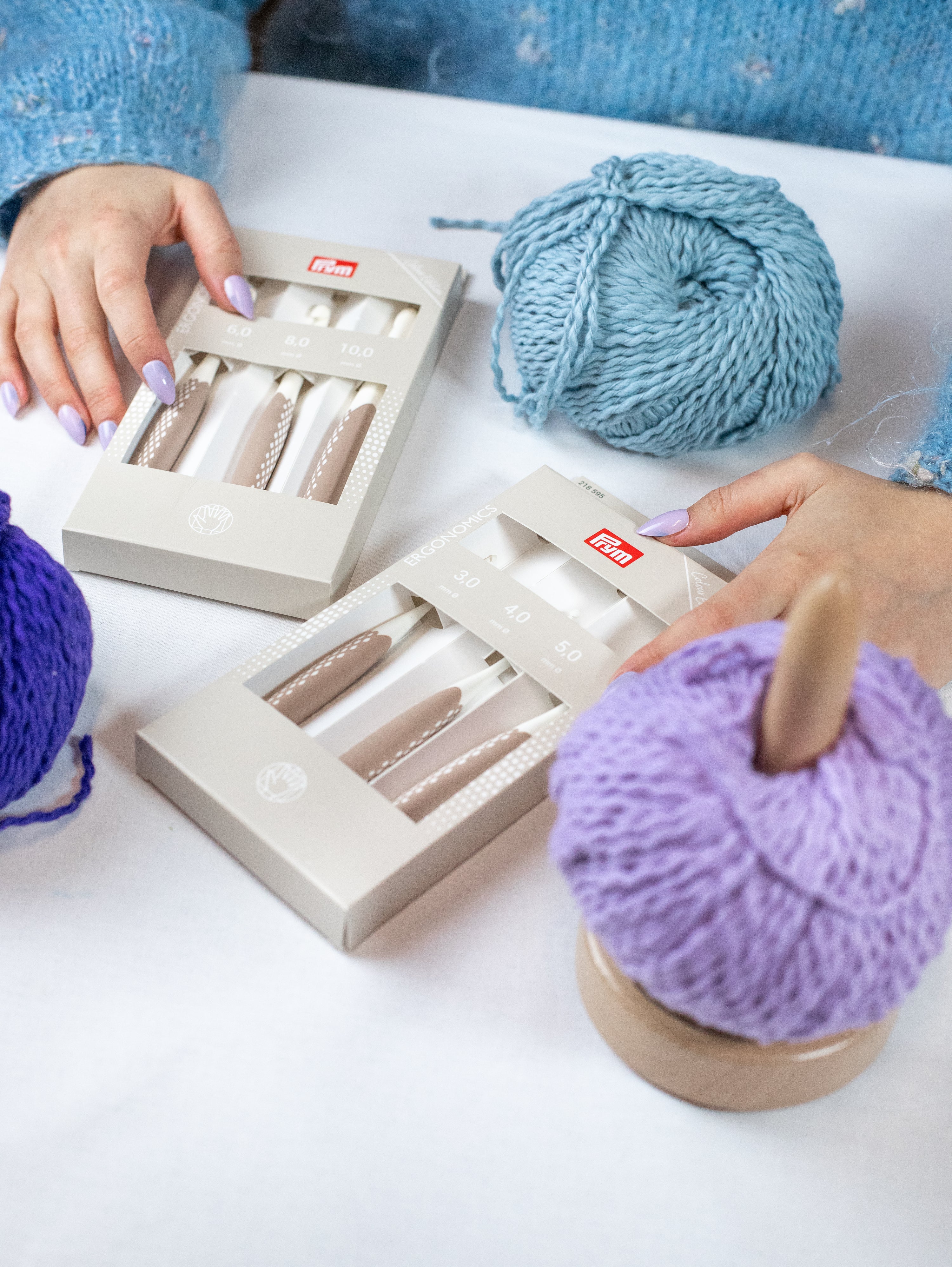 Koukkuvalintaan vaikuttaa se, mitä olet virkkaamassa. Mattoa varten tarvitset tukevan ja pitsiliinan virkkaamiseen tarkkuutta vaativan koukun. Ergonomics-sarjan muotoiltu varsi takaa hyvän otteen ja ergonomisen työskentelyn.